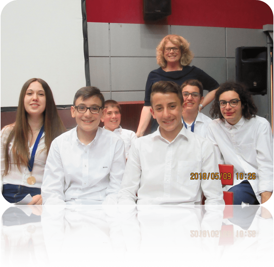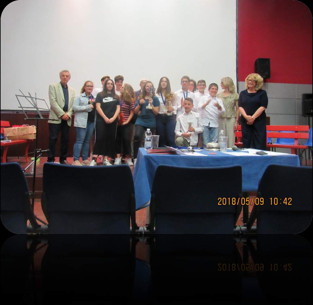 Sul lato destro del palco si posiziona la squadra de “I Leoni”: Giulia, Giulia, Vittoria, Elettra, Matteo e Marco, allenata dalla professoressa Elisa Bello